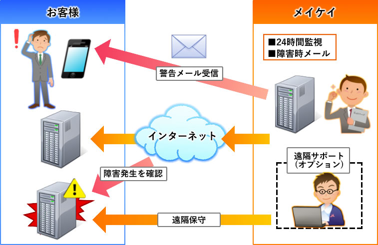 - 当社内の自動監視システムを利用することで、監視が不要になります。